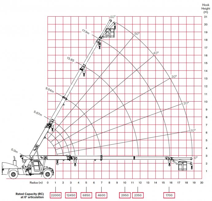 Telescopic Boom Size 5.67m - 17.9m including Manual 3rd extension + fly attachment to max reach of 20.83m.