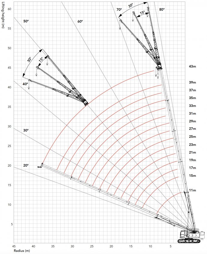 • Maximum boom + jib length: 43m+16m