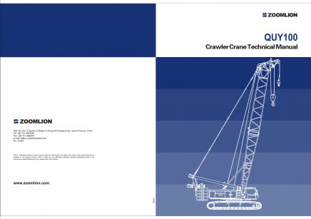 The Zoomlion QUY100 is a 100-ton capacity crawler crane. It features a main boom ranging from 19-73 meters, a 209 kW Cummins engine, and optional luffing or fixed jibs, making it suitable for heavy lifting.