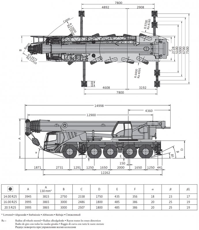 Outrigger Footprint: 8m x 7.5m - 4 point support