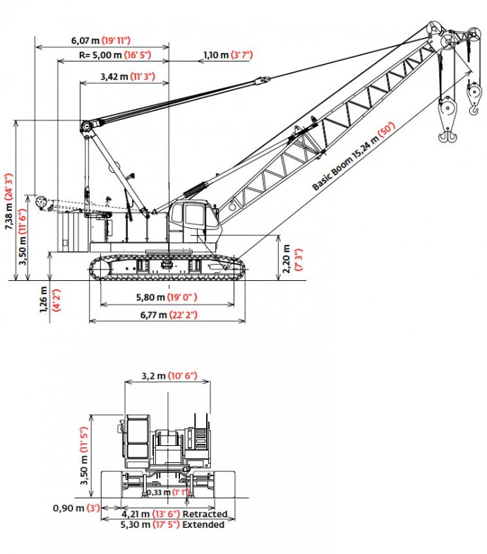 Outrigger Footprint: 6.77m x 5.3m - 4 point support